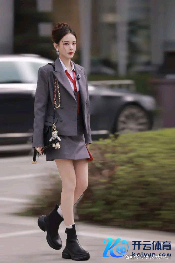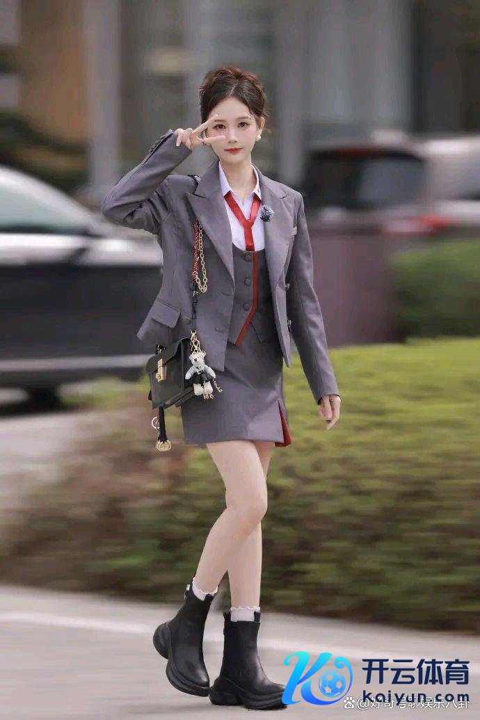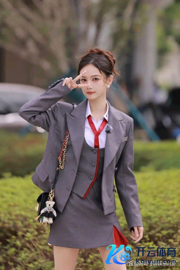 辩论词,更让东说念主惊艳的是她在另一场行径中的灰色与红色混搭西装套装。这套西装的打算荒谬私有,灰色短款西装外衣内搭U领西装马甲,衣襟的打算剿袭了灰红撞色,陡然点亮了统共造型。内搭的白色衬衫上拦截着红色小花,与外衣和马甲酿成了好意思满的呼应。而那条灰色的开叉裙摆更是打算感统统,短款裙摆上亦然红色看成拼接色,让统共造型愈加相助转圜。