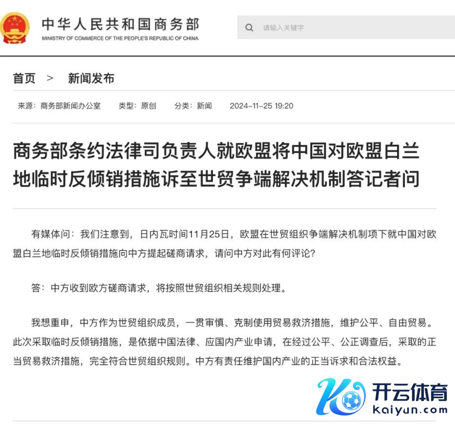有媒体问:咱们留神到,日内瓦技艺11月25日,欧盟辞世贸组织争端不停机制项下就中国对欧盟白兰地临时反推销措施向中方拿起相干请求,领导中方对此有何评述?