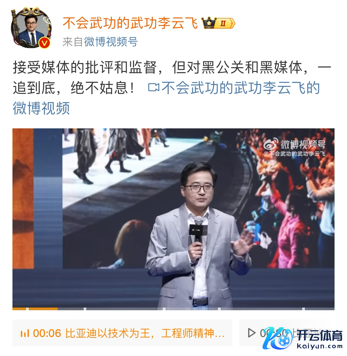 对于“黑公关”,李云飞明确指出基于事实报谈、月旦以至诬陷性报谈,比亚迪大致吸收且空闲积极不异交流。