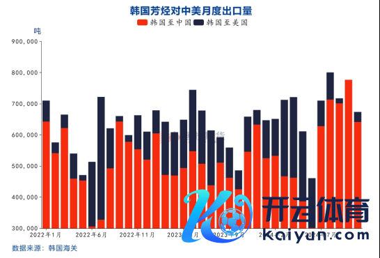 好意思国主要自亚洲的印度、日本、韩国、中国台湾、沙特及阿联酋等地区或国度入口调油组分,其中自印度入口量最大,占以上国度或地区总量的45%,其次是韩国占比24%,沙特占比16%。其中,韩国事东北亚地区紧迫的芳烃输出洋,其对好意思芳烃类产物的季节性出口变化导致东北亚区域内芳烃商场阶段性供需矛盾突显,亦然近几年亚洲芳烃季节性强弱特质突显的原因。