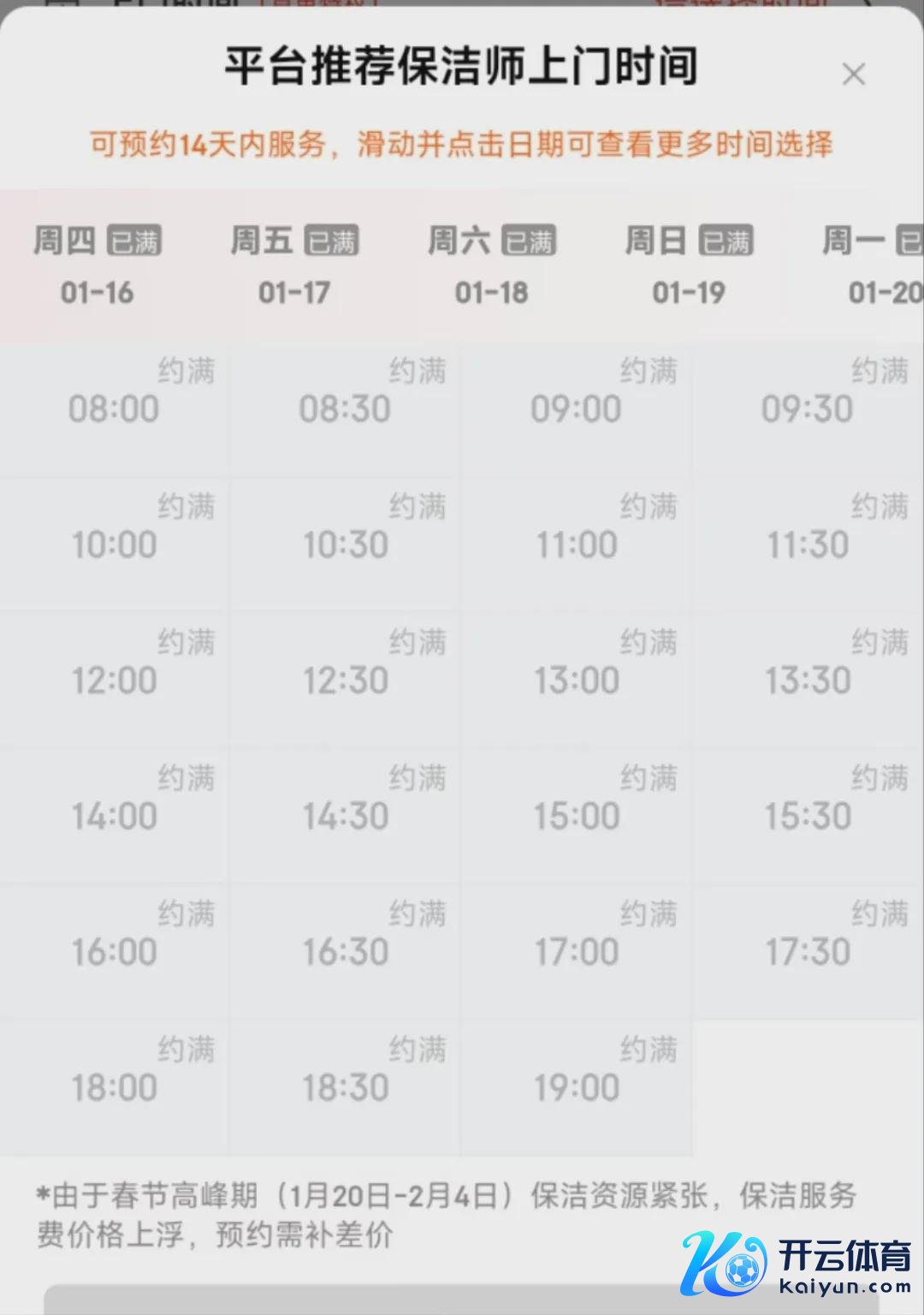 记者看望了部分家政作事线上平台后发现,一些平台可提供保洁作事的时段已早早被约满;