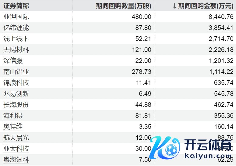 15家上市公司股票获回购,亚钾国外回购金额最高15家上市公司股票获回购,亚钾国外回购金额最高